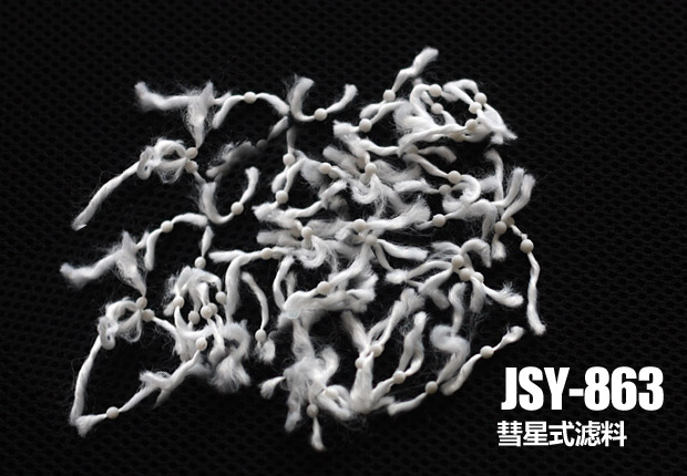 過濾時,由于核心和纖維絲束的比重差,核心起到了對纖維的壓密作用,由于核心尺寸較小,過濾斷面空隙分布的均勻性影響不大,起到過濾狀態既有縱向深層過濾,又有橫向深層過濾,從而提高了濾床的截污量、過濾精度和過濾速度。反沖洗時,由于核心和纖維絲束比重差,纖維絲束隨反沖洗水流而散開產生較強的擺動,再經過空氣擦洗,濾料之間相互碰撞產生較強的擺動、翻轉,強化了反沖洗時濾料受到的機械作用力,使附著在纖維絲束表面的懸浮物顆粒很容易脫落,提高了纖維過濾體反沖洗洗凈度,反沖洗耗水量小。